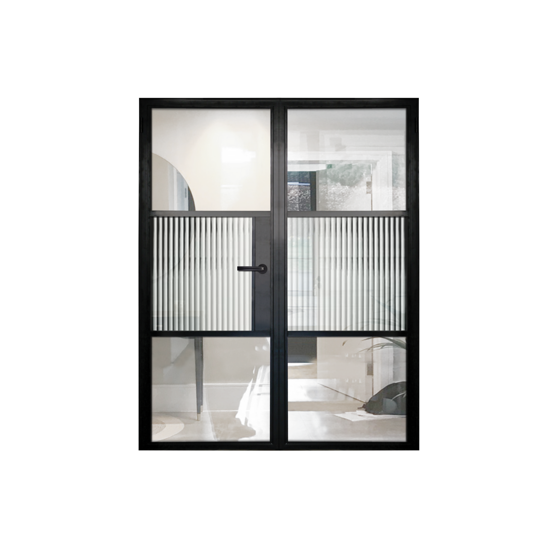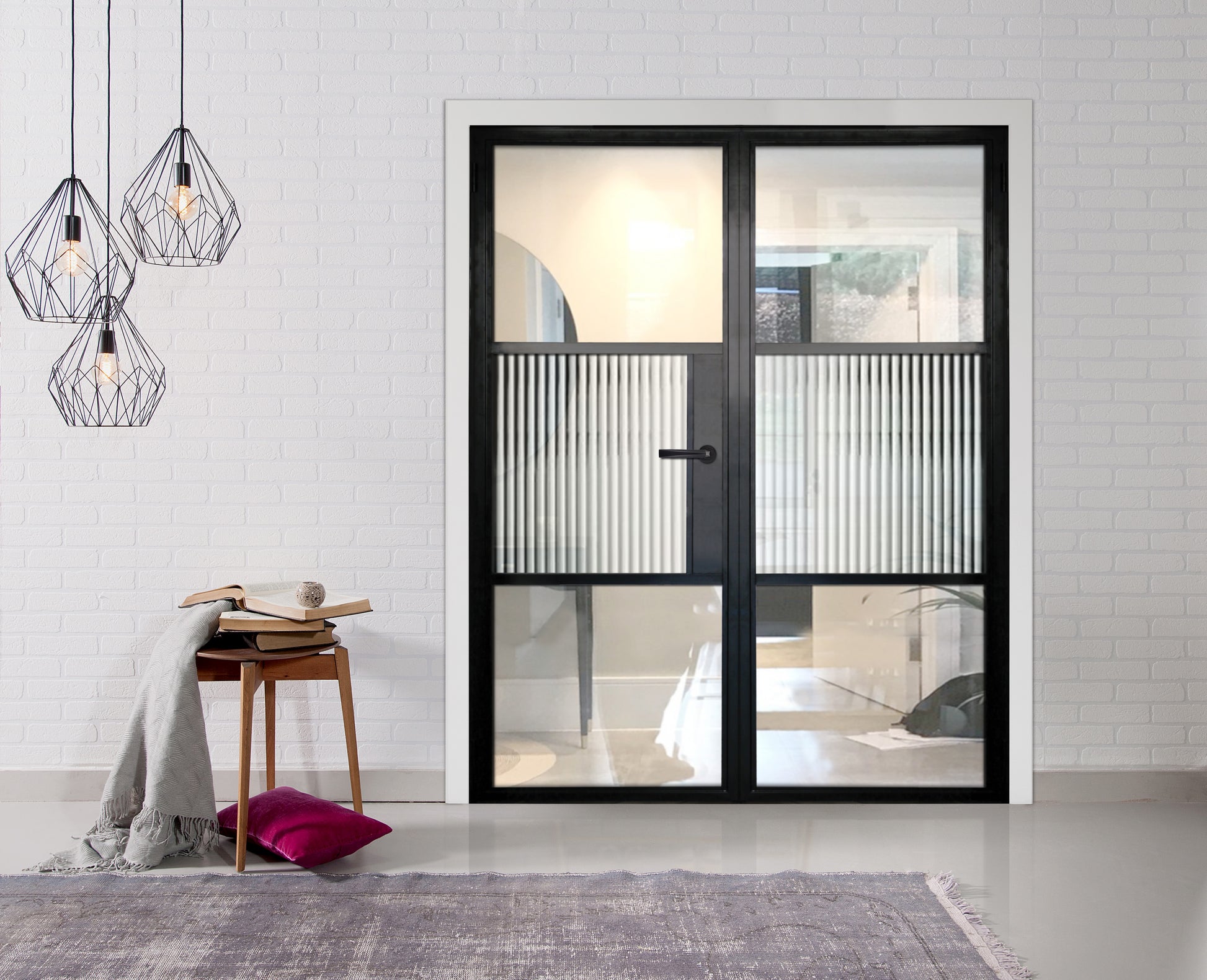 3 Panel Interior Double Door - Clear Glass / Reeded Glass / Clear Glass